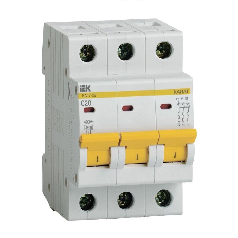 Автоматический выключатель IEK Karat ВА 47-29 4,5кА, С 20А, 3П, MVA20-3-020-C