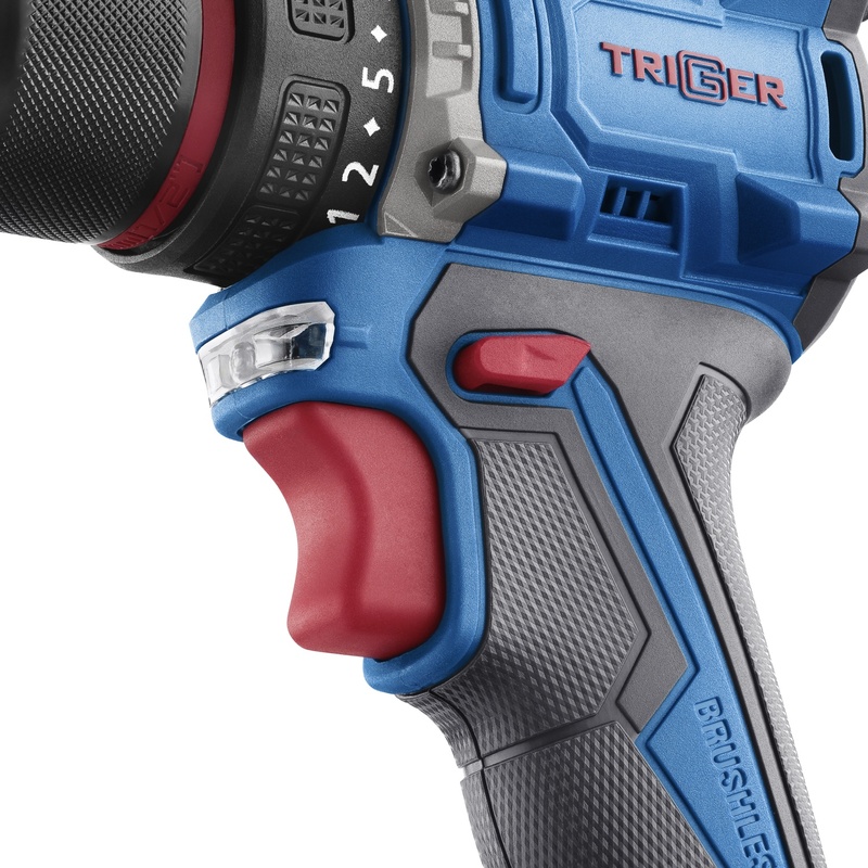 Дрель-шуруповерт Trigger 20122 - мощный бесщеточный шуруповерт с единой аккумуляторной платформой. Отсутствие щеточного узла приводит к уменьшению размера инструмента и увеличивает ресурс двигателя. Металлический 13 мм патрон с функцией Autofix позволяет заменять оснастку одной рукой и определять усилие ее фиксации по характерным щелчкам, а также использовать оснастку больших размеров.