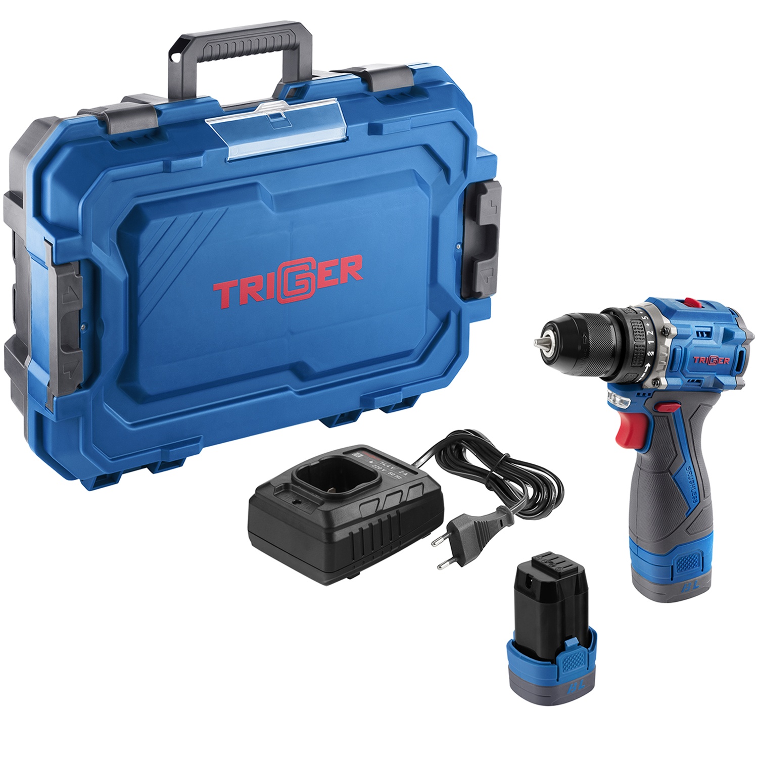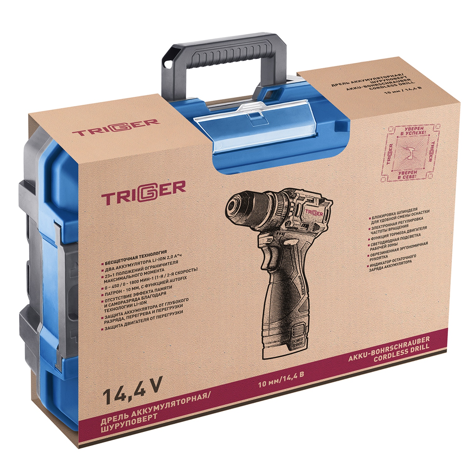 Дрель-шуруповерт Trigger 20130, бесщеточная, 14,4V, 10 мм, 35 Нм, 2 аккумулятора Li-ion (2Ач), кейс