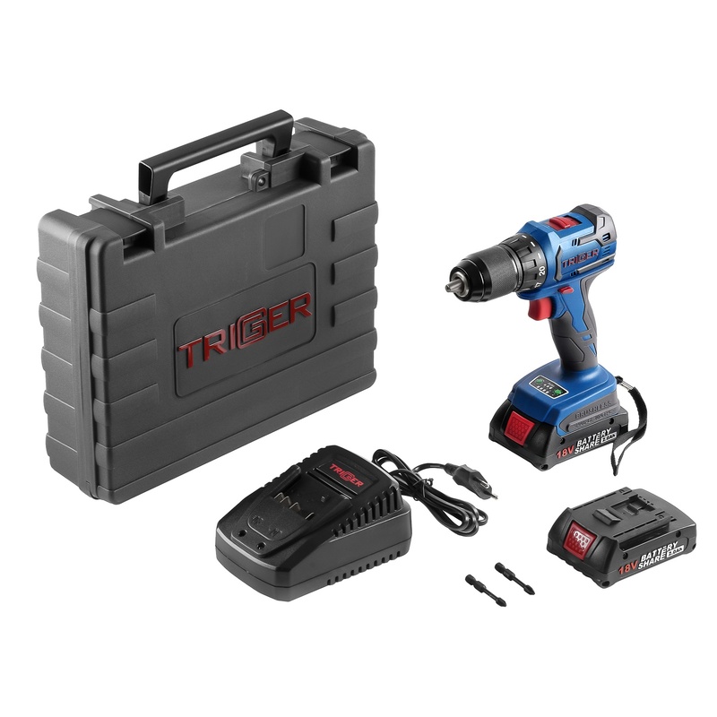 Дрель-шуруповерт Trigger 20111, бесщеточная, 2 аккумулятора Li-ion (2Ач), 18V, 13 мм, 72 Нм, кейс