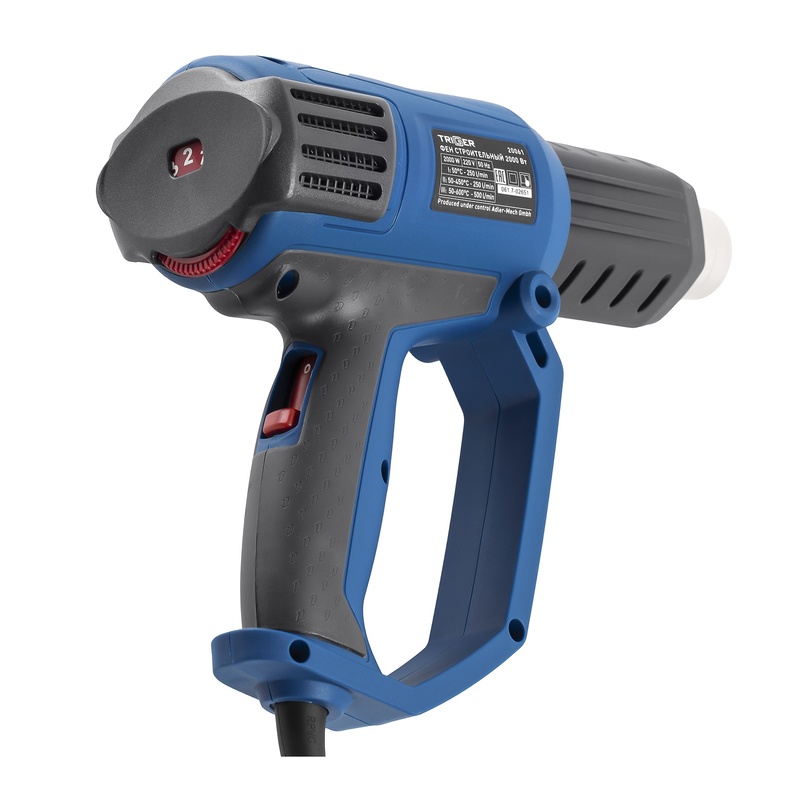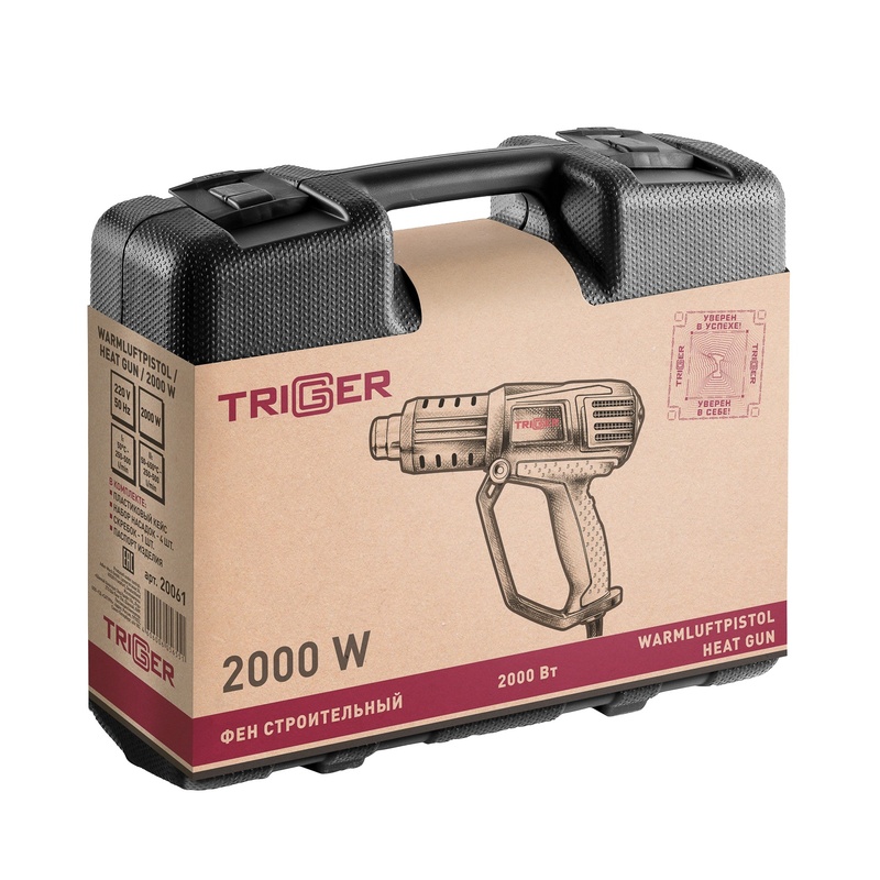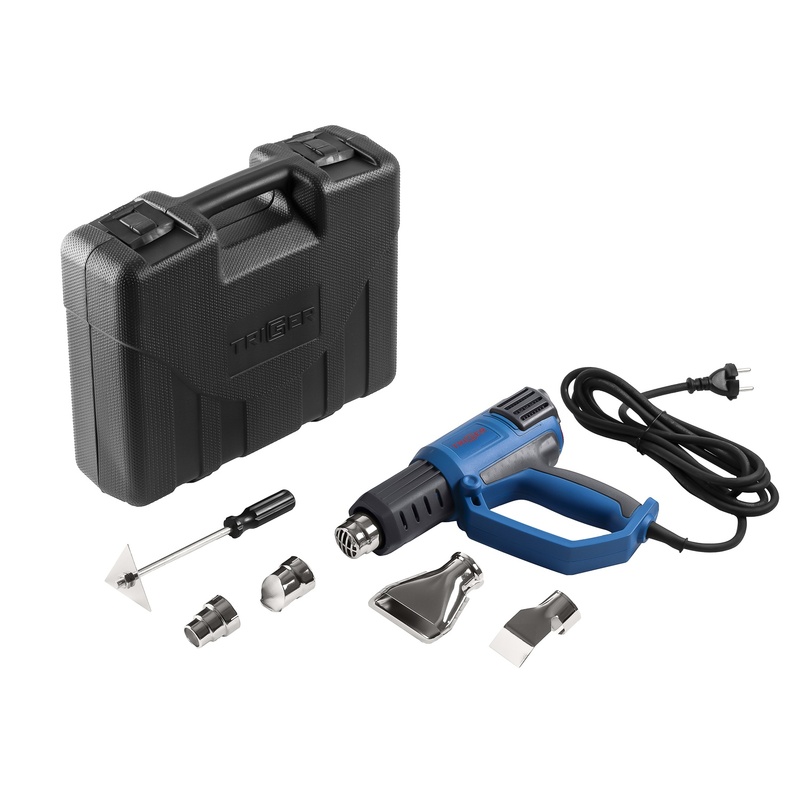 Фен строительный сетевой Trigger 20061, 2 кВт, 50-600°, 4 насадки, L кабеля=3 м, кейс