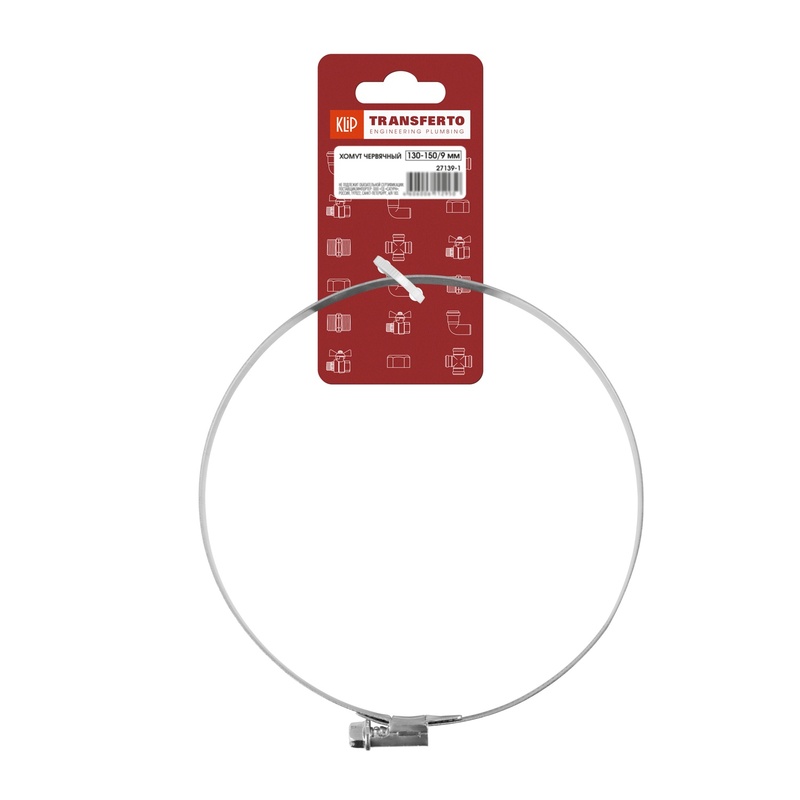 Хомут червячный Klip 27139-1, 130-150/9 мм