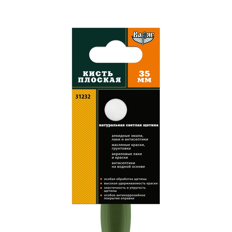 Кисть плоская ВАРЯГ 31232 светлая щетина 35 мм