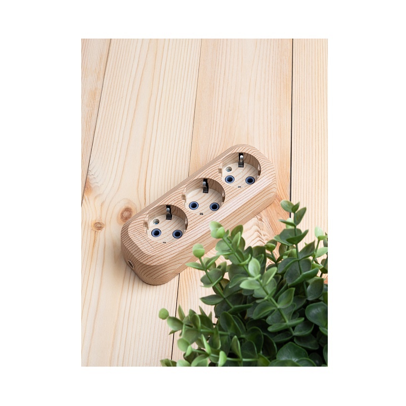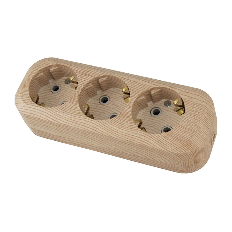 Колодка 3 гнезда, с/з, 16А, светлое дерево