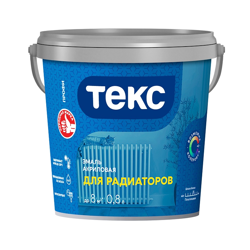 Эмаль акриловая для радиаторов Текс белая полуглянц. (0,8 л)