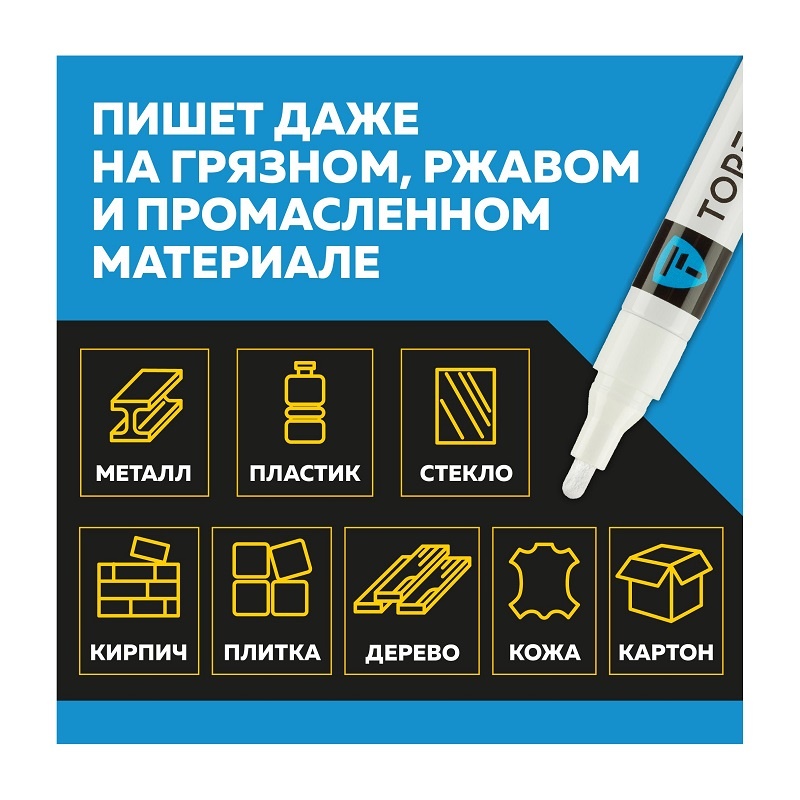 В строительном магазине Сатурн можно купить товар "Маркер лаковый Topfort Industrial белый 4 мм" по цене от 184 руб с доставкой за 4 часа по Орехово-Зуеву или оформить самовывоз.
