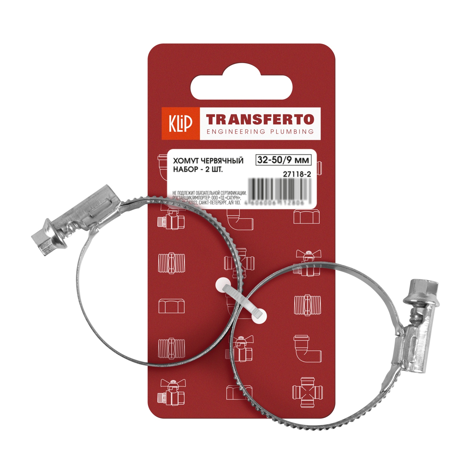 Набор хомутов червячных Klip 27118-2, 32-50/9 мм (2 шт)