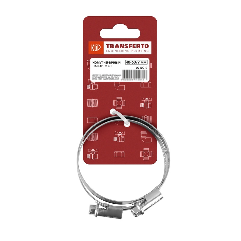 Набор хомутов червячных Klip 27122-2, 40-60/9 мм (2 шт)