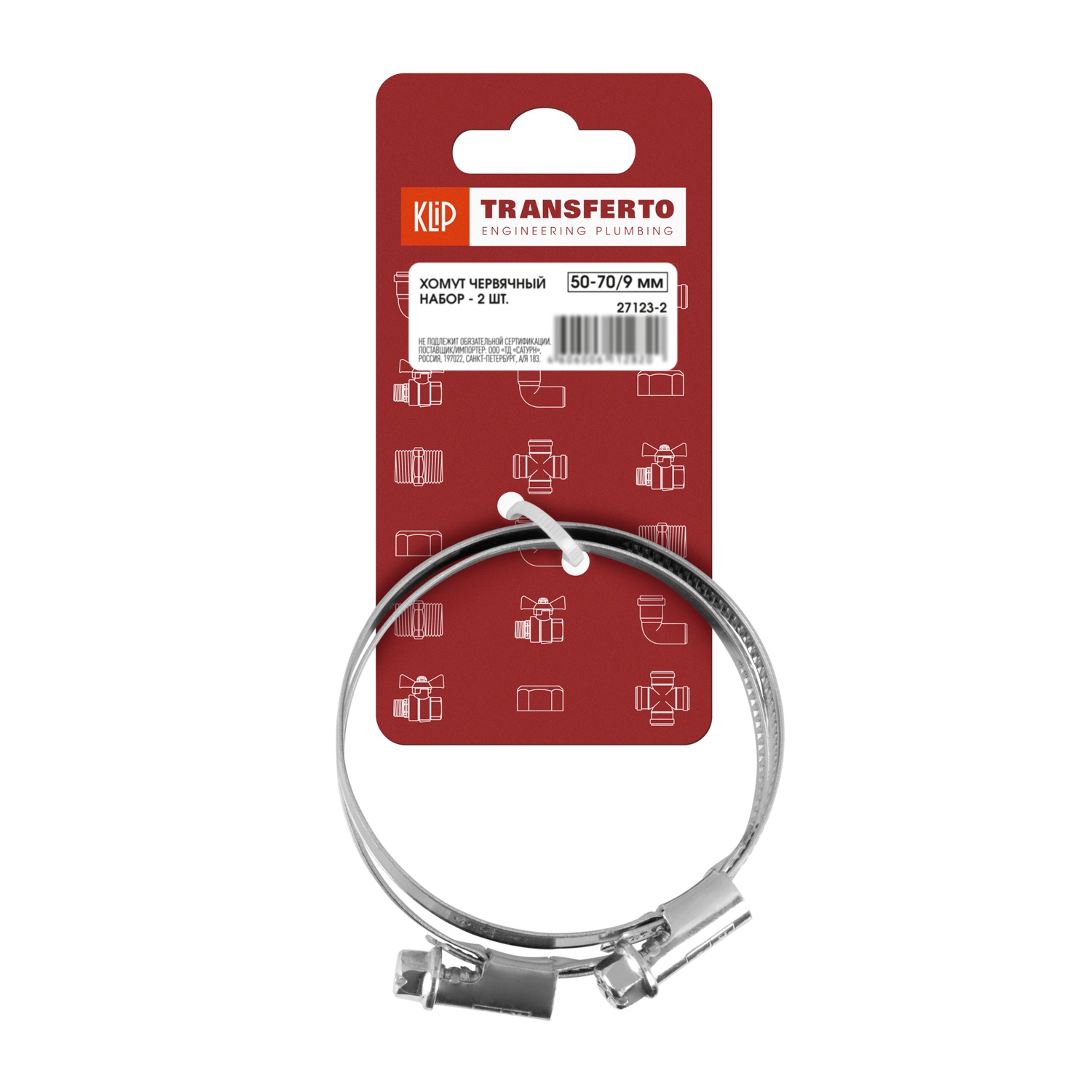 Набор хомутов червячных Klip 27123-2, 50-70/9 мм (2 шт)