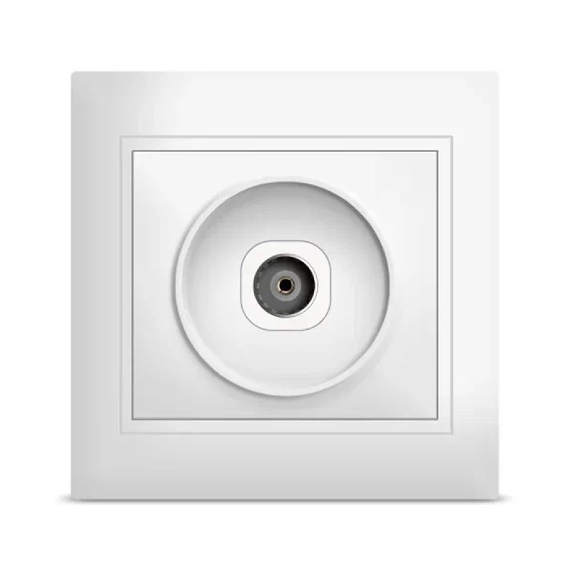 Розетка телевизионная одиночная (тупиковая) скрытой установки серии Севиль — белая. Предназначена для организации стационарной точки подключения телевизионного кабеля (коаксиального) в жилых и коммерческих помещениях с скрытой проводкой. Идеальна для гостиных, спален, гостиниц и офисов при оформлении аккуратной законченной точки для ТВ и цифрового/кабельного сигнала.
