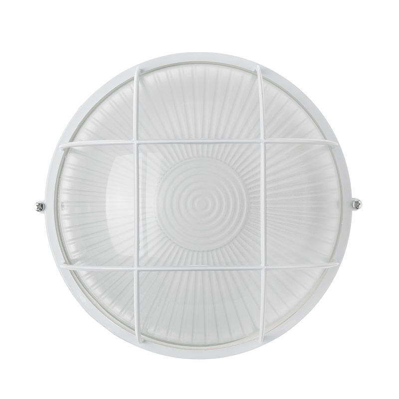 Светильник НПБ под Е27, 100 Вт, круг с решеткой, белый металл+стекло, IP54