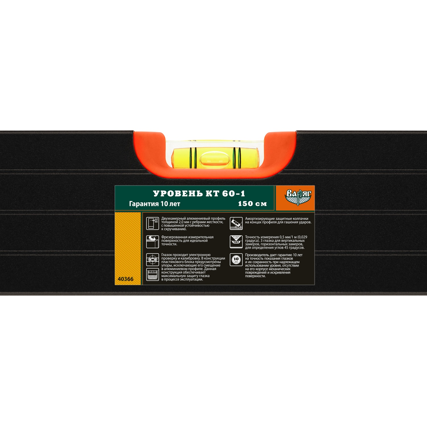 Уровень Варяг 40366 КТ 60-1 усиленный, 3 глазка, 1500 мм