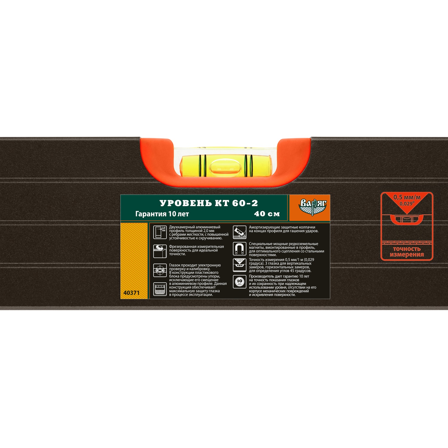 Уровень Варяг 40371 КТ 60-2 магнитный, усиленный, 3 глазка, 400 мм