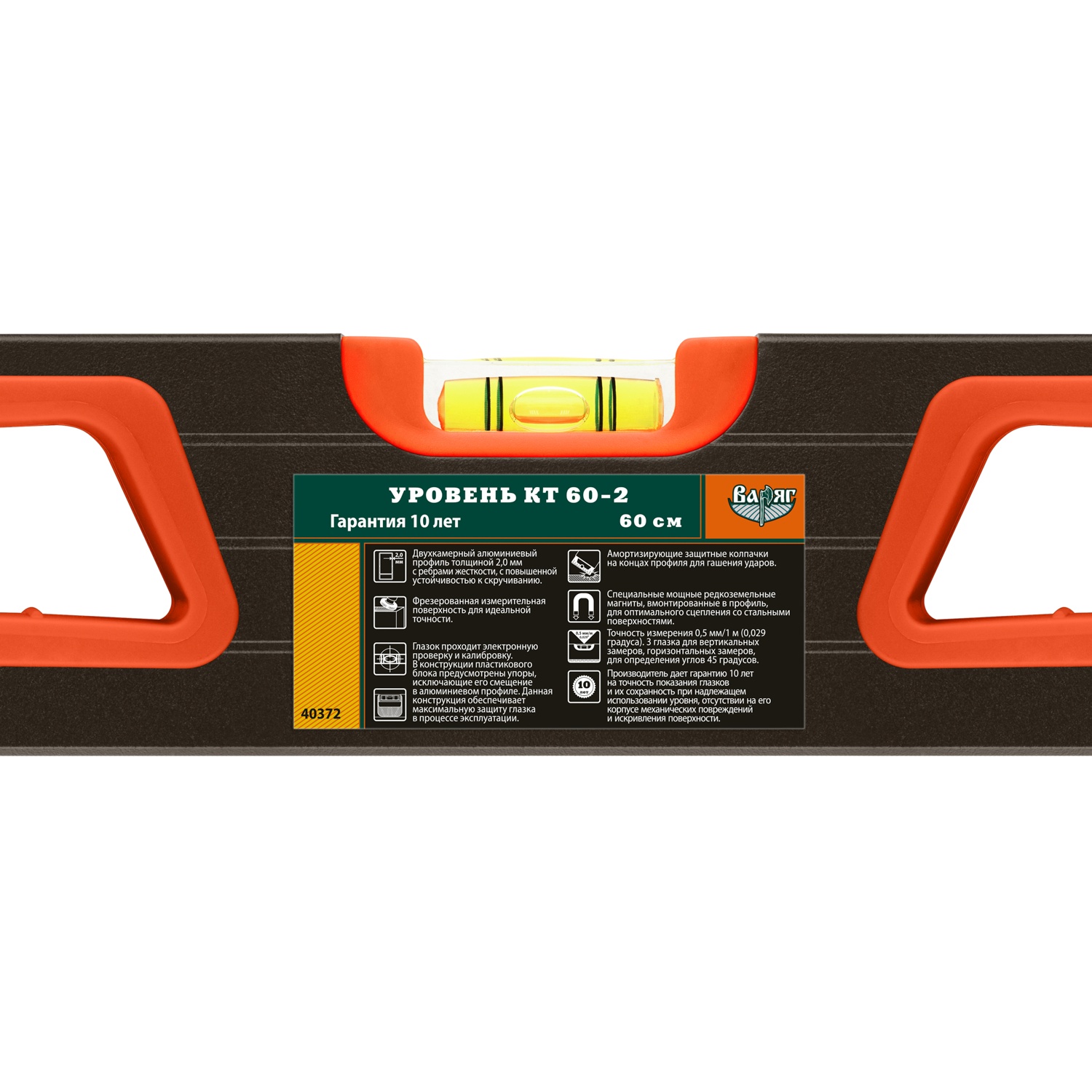 Уровень Варяг 40372 КТ 60-2 магнитный, усиленный, 3 глазка, 600 мм