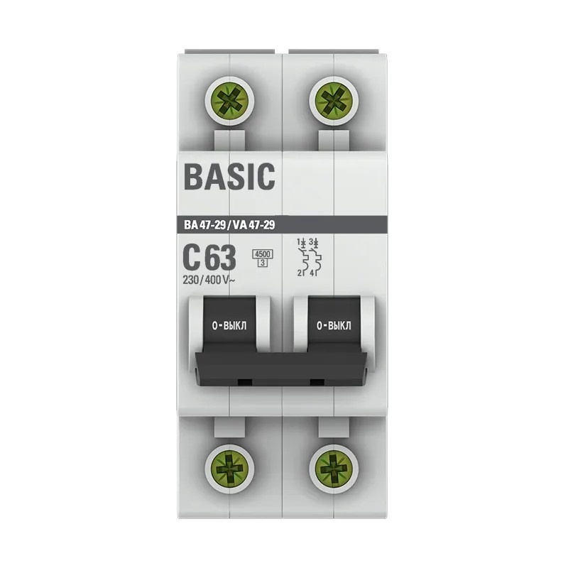Выключатель автоматический EKF ВА 47-29 4,5кА, С 63А, 2П