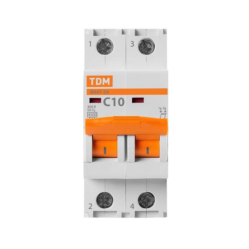 Выключатель автоматический TDM ВА 47-29, 4,5кА, С 10А, 2П