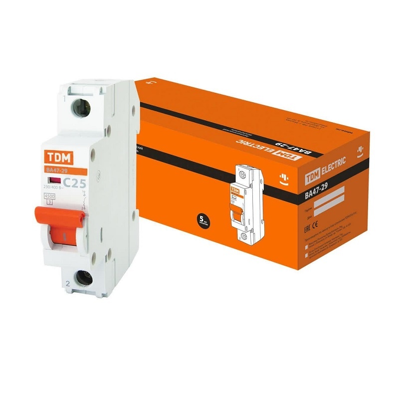 Выключатель автоматический TDM ВА 47-29, 4,5кА, С 25А, 1П